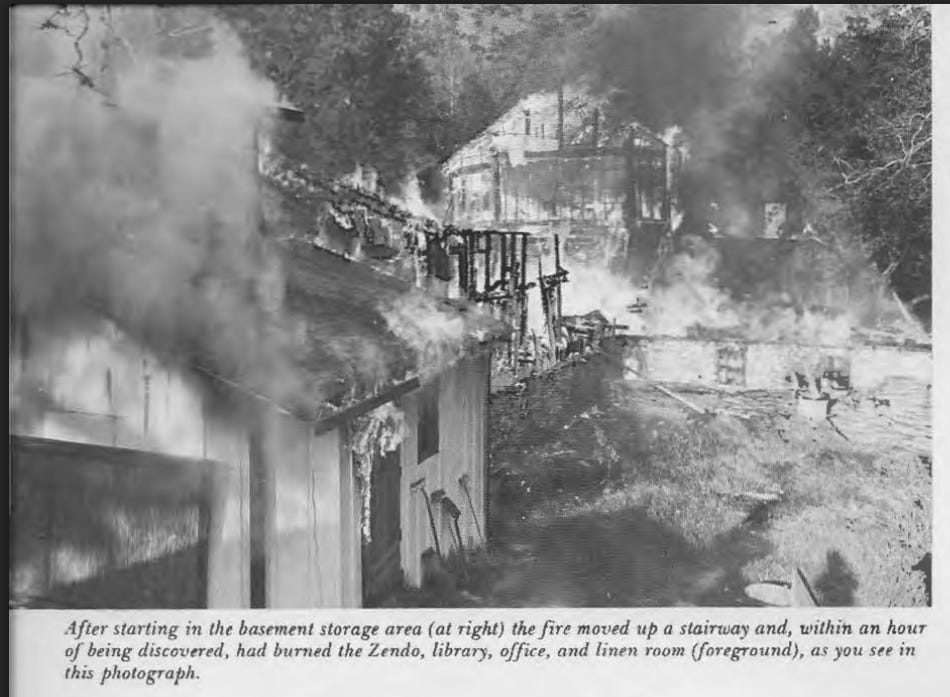 Numerous fires—both wild-land and structural—have blazed through Tassajara since its gate first opened as a Soto Zen monastery in July 1967. Shunryu Suzuki and his first disciples meditated, chanted, ate oryoki meals, and listened to Dharma talks in the original zendo. In April 1978, seven years after Suzuki Roshi’s death, a fire destroyed this meditation hall, and the residents erected a new one in the upper garden, which was supposed to be temporary. While it became more permanent than initially intended, being razed by a fire reminds us all that everything is transient.